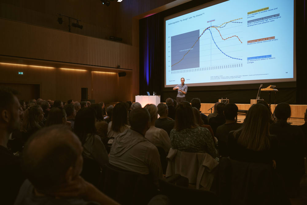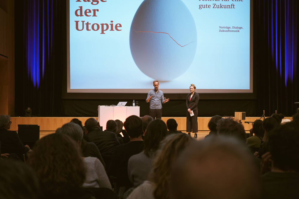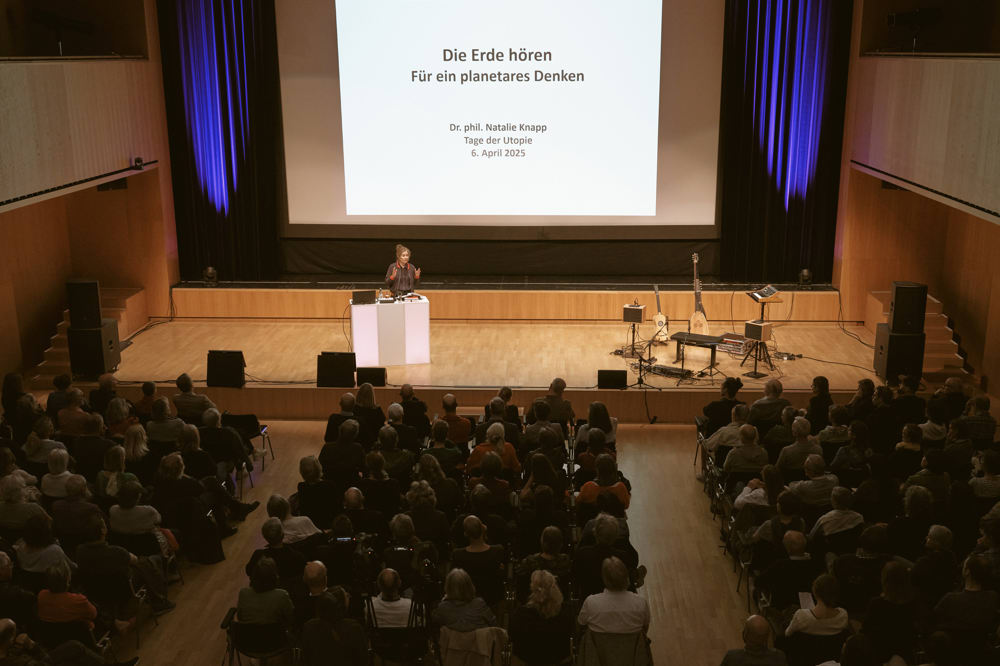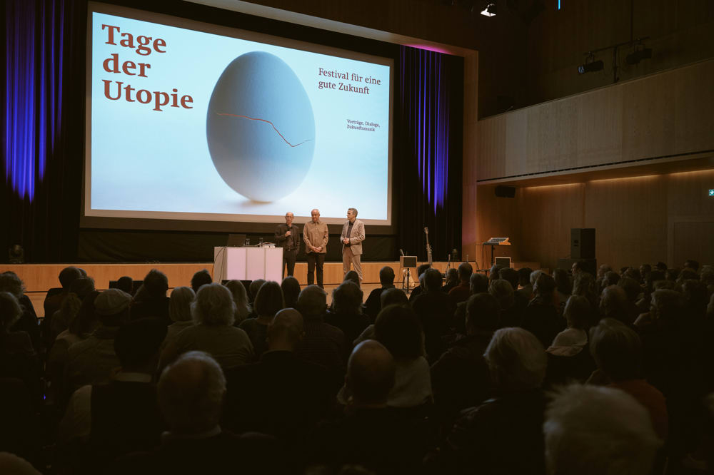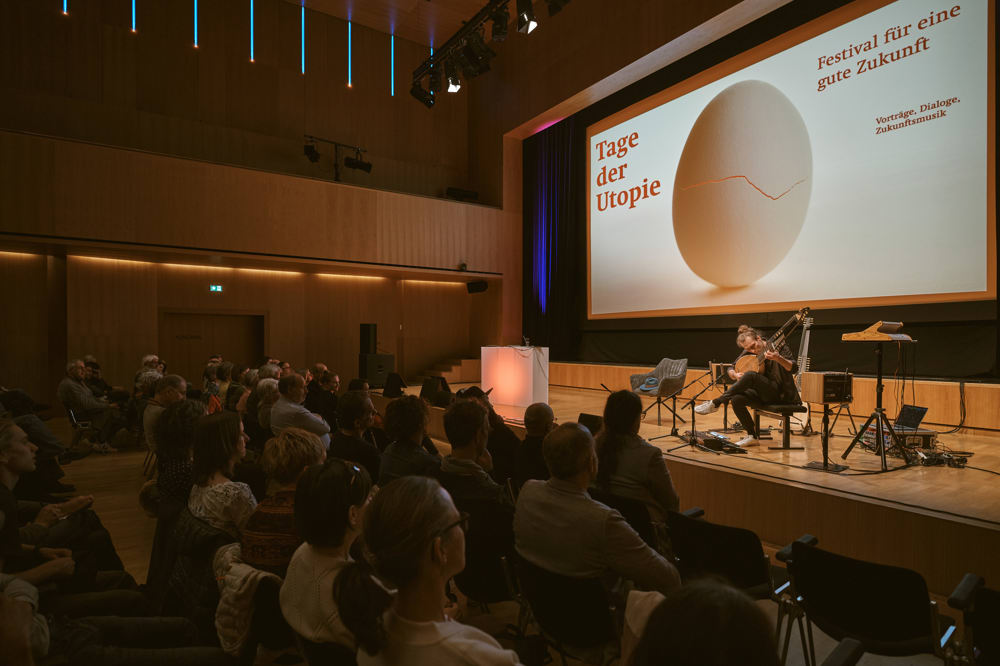Mit über 1.600 Teilnehmenden gingen die Tage der Utopie 2025 über die Bühne. Die meisten Eintritte seit Bestehen des »Festivals für eine gute Zukunft«. Wir erinnern uns an berührende, visionäre, manchmal auch kontroversielle Beiträge. An heiße Diskussionen, lange Gespräche. Die Freude über Menschen, die man schon lange nicht mehr gesehen hat, an einen überraschenden Austausch in der Murmelpause und natürlich an die zauberhafte Musik von David Bergmüller an der Laute. Von ein paar Leuten wissen wir, dass hier etwas begonnen hat – eine Kooperation, ein Versuch, ein Projekt ...